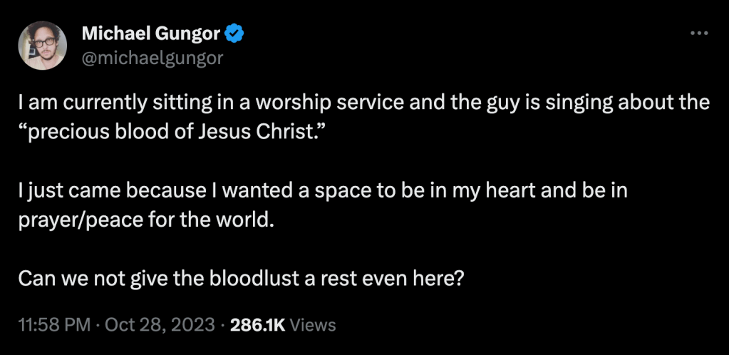 I love Michael Gungor, I really do. Fifteen years ago, he was among the most talented singer-songwriter-bandleaders in Christian and worship music. “Beautiful Things”, “Be My Strength”, etc., were amazing worship songs, true and deep. He is an amazing guitarist, layering parts worthy of Jimmy Page (the equal of Phil Wickham), and a great lyricist and singer as well.